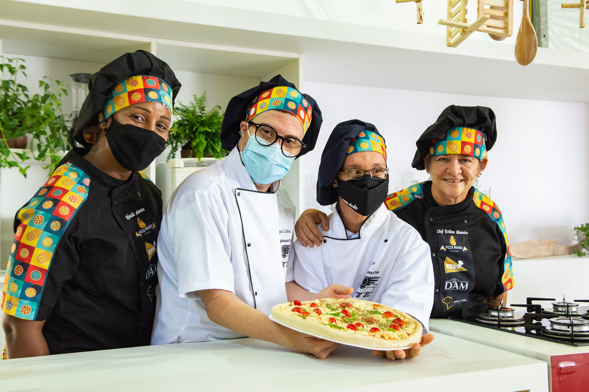 Quem esteve na Praça de Alimentação da 21ª Fenearte na tarde desta segunda-feira (13) pôde conferir uma proposta mais humanizada do espaço que ganhou redes, espaços mais amplos e áreas verdes. Mas um projeto, em especial, chama a atenção do público: a Cozinha Fenearte com aulas diárias de gastronomia. E, nesta segunda-feira, foi a vez dos integrantes do projeto Pizza Maker Down darem uma aula de culinária e cidadania. A oficina faz parte da ampliação da inclusão e acessibilidade desta edição da feira, que passou ainda por uma reestruturação em sua estrutura com adaptação de rampas e corredores mais largos.